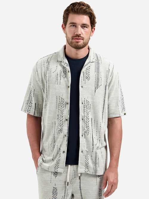 No Excess Short Sleeve Jacquard Hemd Druck Kit No Excess Short Sleeve Jacquard Hemd Druck Kit in der Farbe Wollweiß und Grau mit Passform Regular Fit wird aus Baumwolle und Polyester hergestellt mit Druck Design und Kurzarm.Nachhaltigkeit
